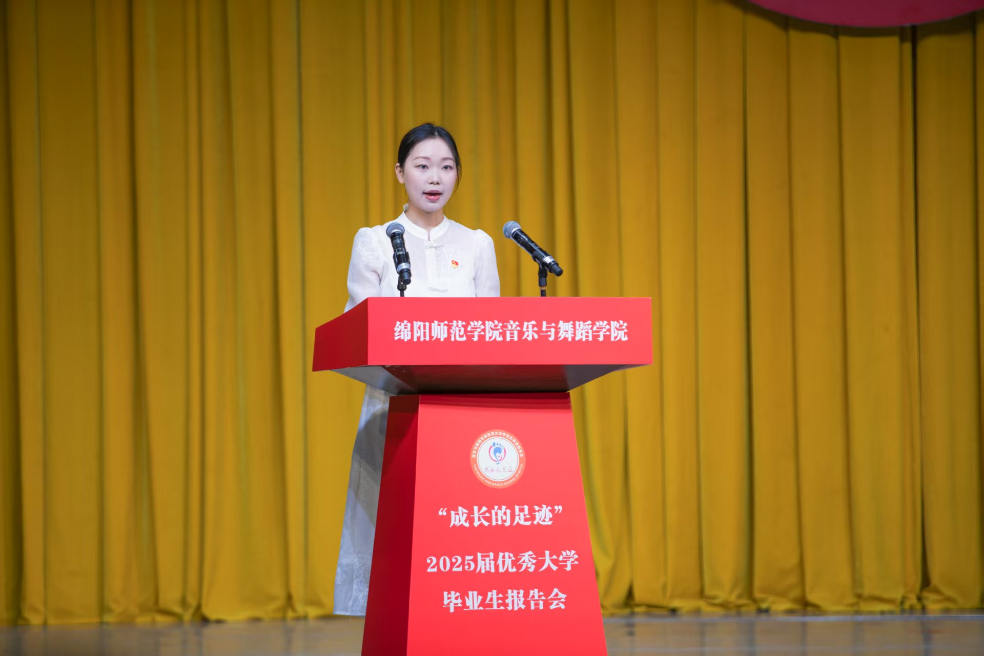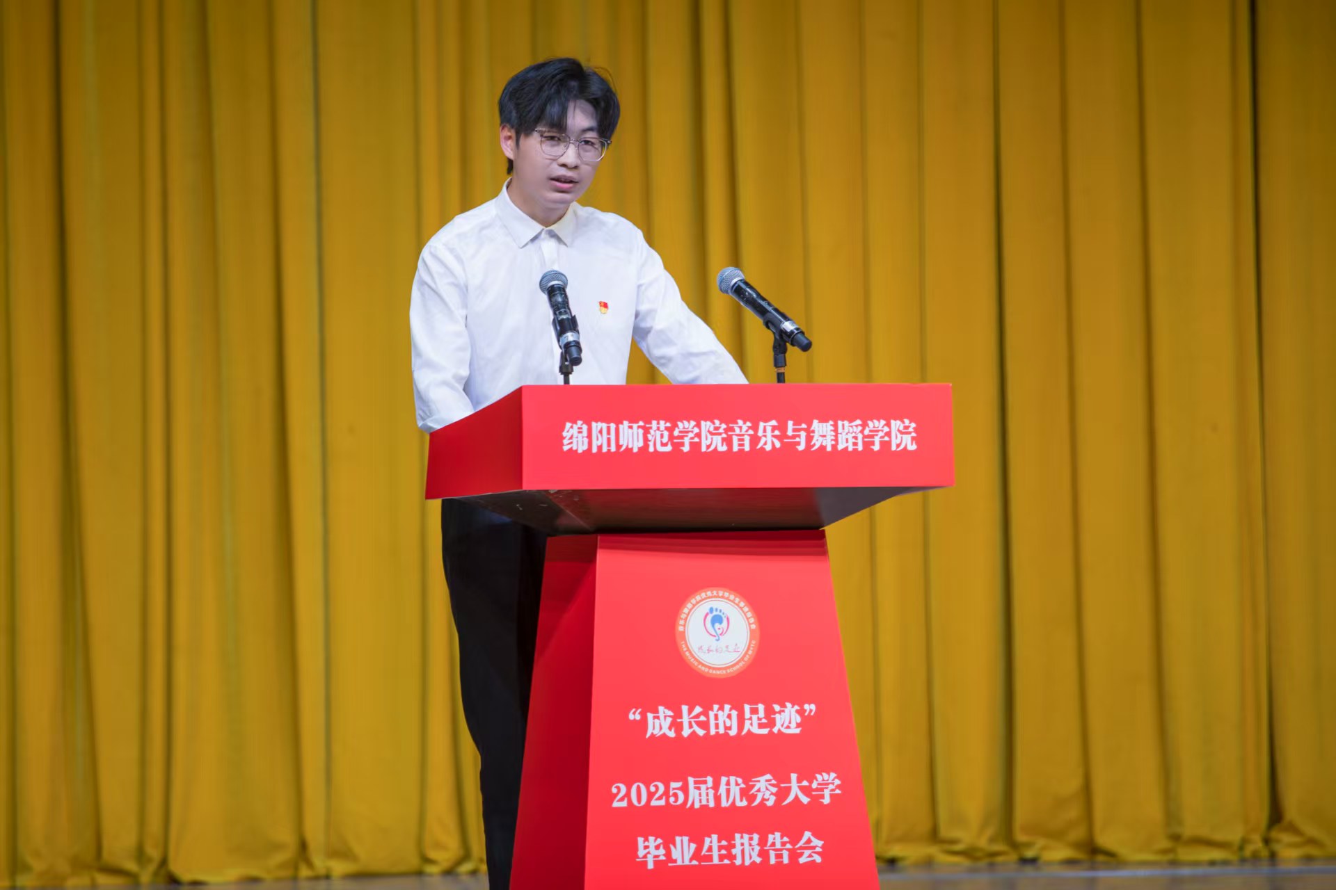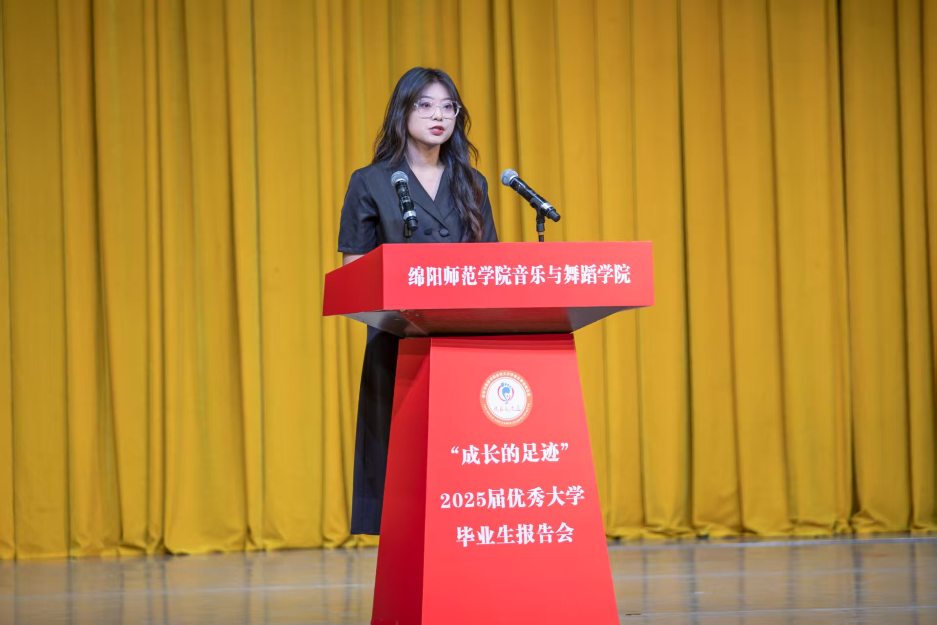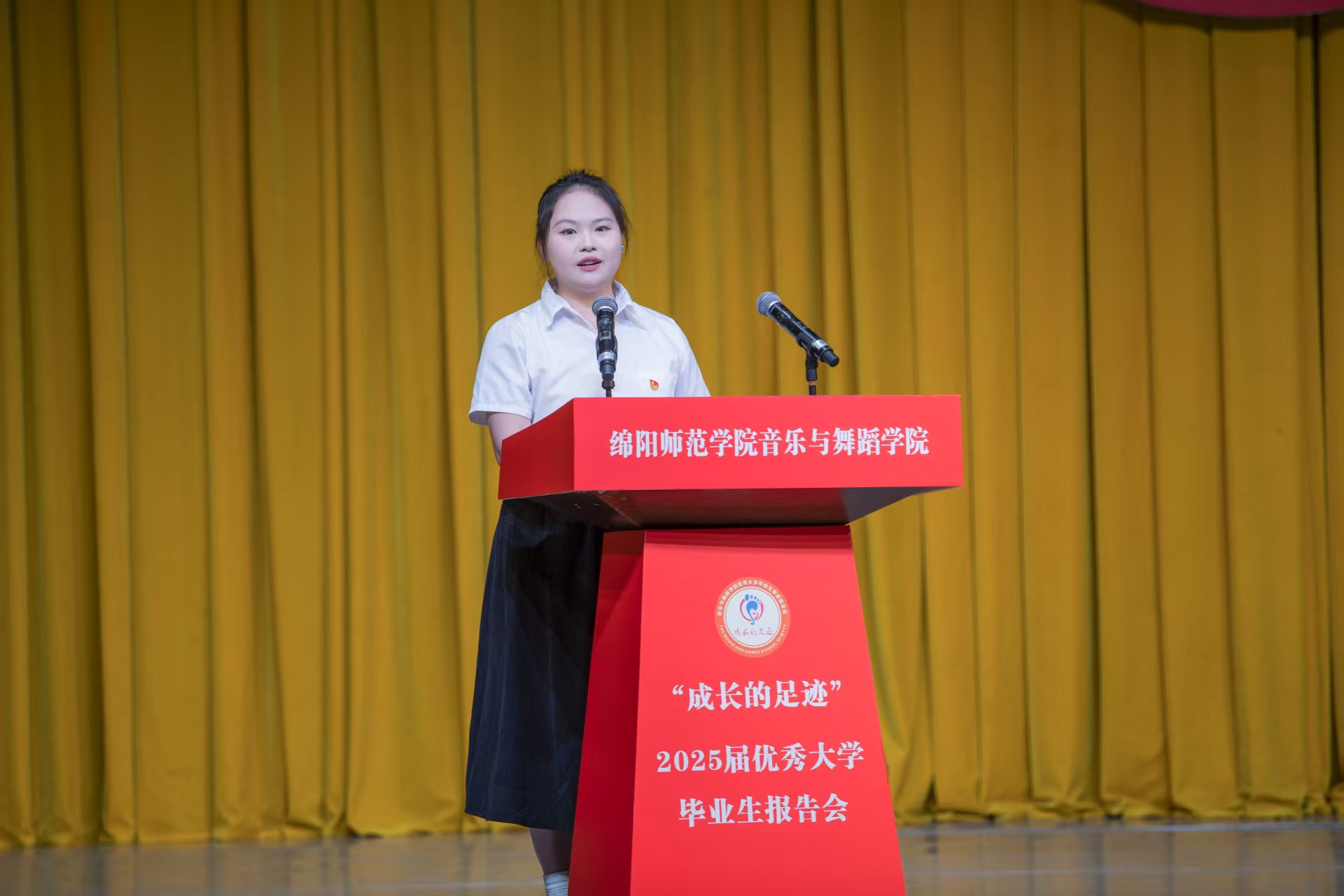 扬帆新时代,青春赴山海。为充分发挥优秀毕业生的典型示范引领作用,6月3日,音乐与舞蹈学院“成长的足迹”2025届优秀大学毕业生事迹报告会举行。5名优秀毕业生代表讲述了他们从青涩新生到优秀毕业生的蜕变历程。2023级、2024级全体学生及2022级团学组织负责人齐聚一堂,共同聆听这场关于奋斗、感恩与梦想的青春对话。