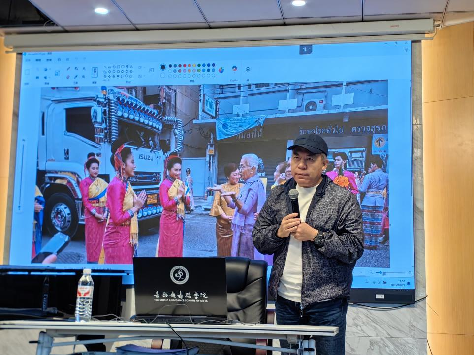随后,赵书峰教授以泰国伊桑地区的历史形成为文化语境,考察其音乐文化在政治边界变迁与地理空间重构中的形成过程,聚焦宏观历史事件与微观社会互动的关联性,为后续的文化特性分析奠定了历史依据。在文化特性层面,赵书峰教授分析音乐在外部社会环境下的适应与变迁。他系统阐述了伊桑音乐的五大核心特征:“区域性”体现在其与湄公河流域政治变迁的紧密关联;“民族性”表现为以老挝族为主体的文化内核;“在地性”通过皮影戏伴奏转型、乐器材料革新等实例得以印证;“表演性”则在蜡烛节、火箭节等民俗仪式中的现场展演,表现为高度即兴的集体狂欢;“整体性”强调伊桑音乐形成与东南亚区域文化史以及全球史的互动关联。