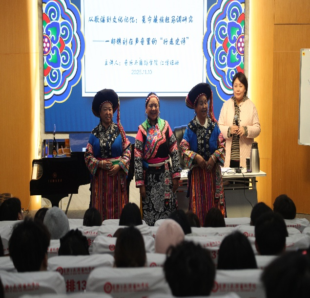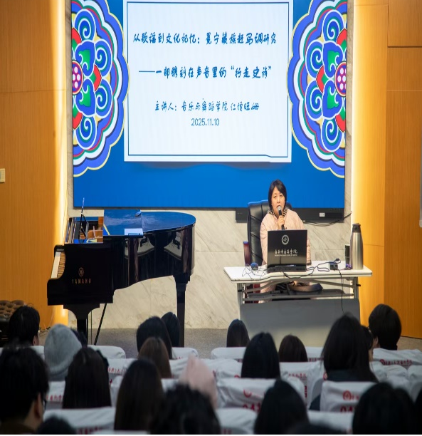2025年11月10日,一场题为《从歌谣到文化记忆:冕宁藏族赶马调研究》的专题讲座在音乐与舞蹈学院小音乐厅成功举行。讲座由音乐与舞蹈学院党委委员、副院长王宬葓主持,2024级音乐学全体学生聆听了讲座。