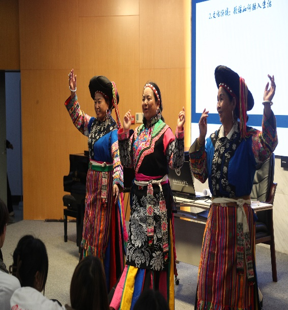 主讲人仁增旺姆副教授带领现场同学们进行了一场穿越时空的声音之旅,深入解读了冕宁藏族赶马调如何从简单的劳动歌谣,升华为承载族群历史与情感的珍贵文化记忆。并首次邀请三位冕宁藏族赶马调传承人进行现场展演与教学,形式新颖,反响热烈。