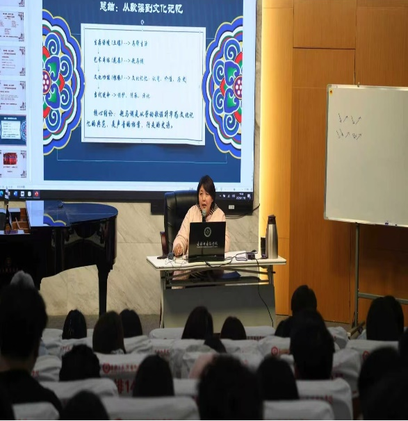 讲座在三位传承人原生态的藏族赶马调演唱中拉开序幕,高亢悠扬的歌声瞬间将观众带入茶马古道的意境。随后,仁增旺姆老师通过历史地理维度、艺术本体维度、文化理论维度等三个维度对赶马调进行了深入解读,细致讲解了赶马调的历史渊源、艺术特色;并且运用文化记忆理论,阐释了赶马调作为非物质文化遗产的深层价值:这些歌谣实际上是一个族群存储历史记忆、传递价值观念、凝聚群体认同的重要媒介。讲座同时也指出了当前赶马调保护工作面临的严峻挑战,提出了多方探索传承新路径。强调,保护赶马调不仅是为了保存一种艺术形式,更是为了守护中华民族多元一体格局中的重要文化基因。