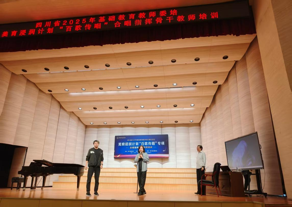 近日,由四川省教育厅委托主办的 2025 年基础教育教师培训委托项目美育浸润计划 “百歌传唱” 专项活动在绵阳举办。全省 21 个市州的 200 余名中小学音乐骨干教师齐聚于此,共同探索美育浸润的实践路径。我校 2016 届校友李晓东受邀担任特邀嘉宾,围绕《小雅・鹿鸣》分享经典文化传承的心得与智慧,其分享内容获得全场参训教师的高度认可与热烈反响。