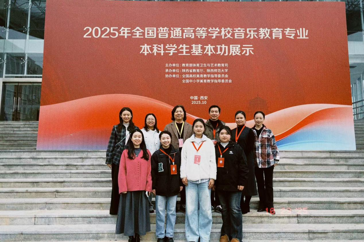 近日,教育部公布了2025年全国普通高等学校音乐教育专业本科学生基本功展示评选结果,音乐与舞蹈学院选派的三名参展学生,凭借扎实的专业基础、出色的舞台表现和稳定的临场发挥,在本次活动中共斩获9项荣誉,充分展现了学院音乐教育专业的人才培养质量与学生的综合素养。